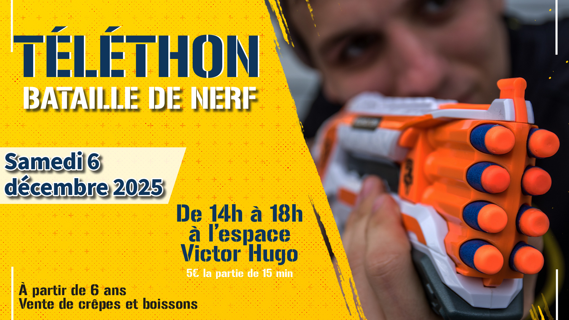 La Ville organise une après-midi Bataille de Nerf dans le cadre du Téléthon.