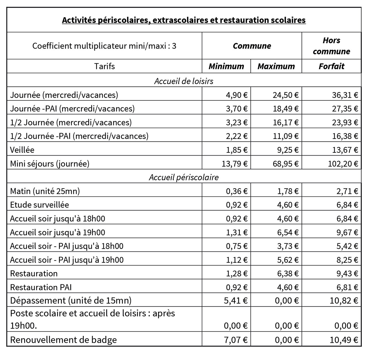 Actualisation du calcul du taux d’effort à partir du 1er janvier de chaque année pour toutes les activités périscolaires, et extrascolaires sur présentation de l’avis d’imposition N-1, un justificatif de domicile et une attestation CAF de moins de 3 mois. Pour les familles monoparentales, une attestation sur l’honneur de vie seule est également demandée.